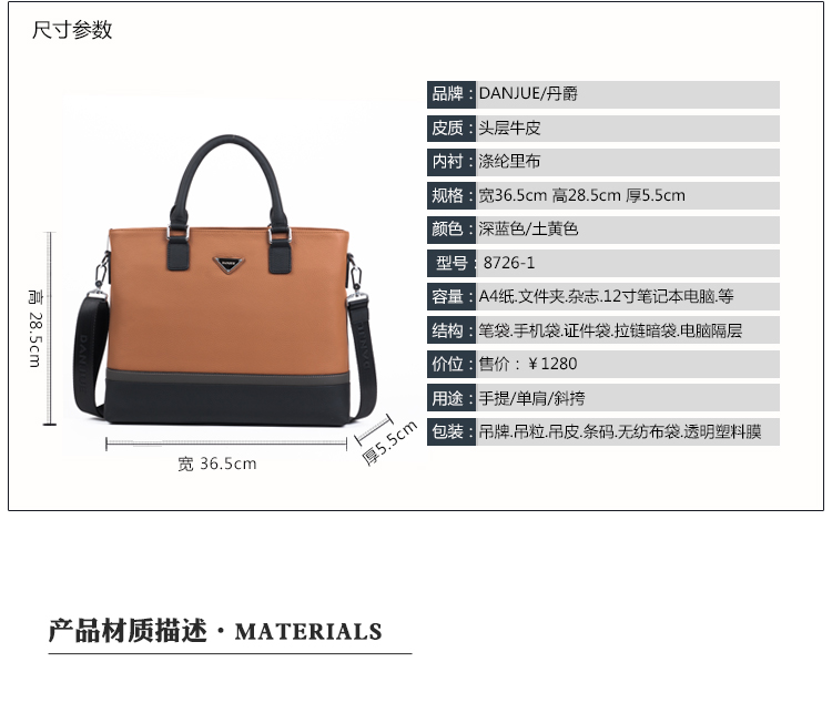 网站首页 【丹爵 DANJUE 2016新款男包头层牛皮商务手提包男士单肩斜挎包牛皮男式包8726-1 土黄色 横款公文包】 售价: ¥469+90美金币 已售: 4512 评价: 次评价 微信扫一扫轻松购买 数量: − + 收藏 保障: 随时退 过期退 极速退 真实评价