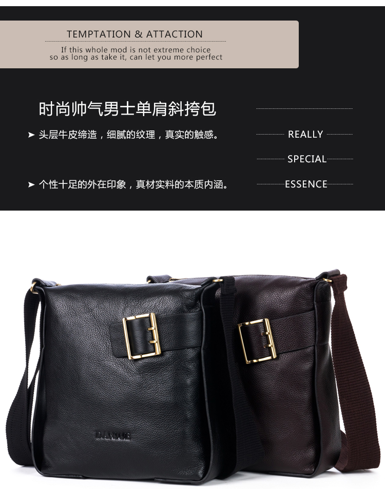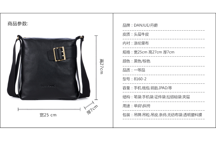 网站首页 【DANJUE 丹爵 头层牛皮 男士单肩包 休闲斜挎包 商务公文包 真皮男士包 2016新款 D8160-2黑色均码】 售价: ¥329+45美金币 已售: 3465 评价: 次评价 微信扫一扫轻松购买 数量: − + 收藏 保障: 随时退 过期退 极速退 真实评价