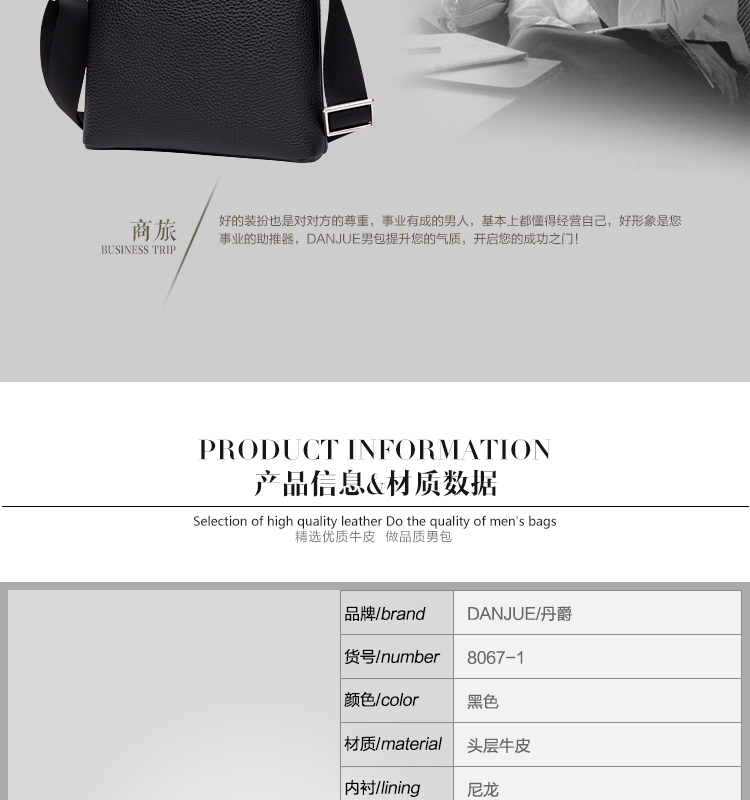 网站首页 【DANJUE 丹爵 真皮男士单肩斜挎包简约时尚男包 8067-1黑色均码】 售价: ¥348+45美金币 已售: 4563 评价: 次评价 微信扫一扫轻松购买 数量: − + 收藏 保障: 随时退 过期退 极速退 真实评价