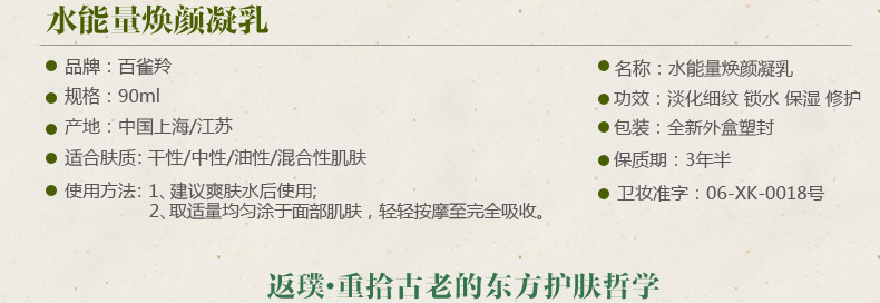 【百雀羚 乳液 水能量焕颜凝乳液90ml】