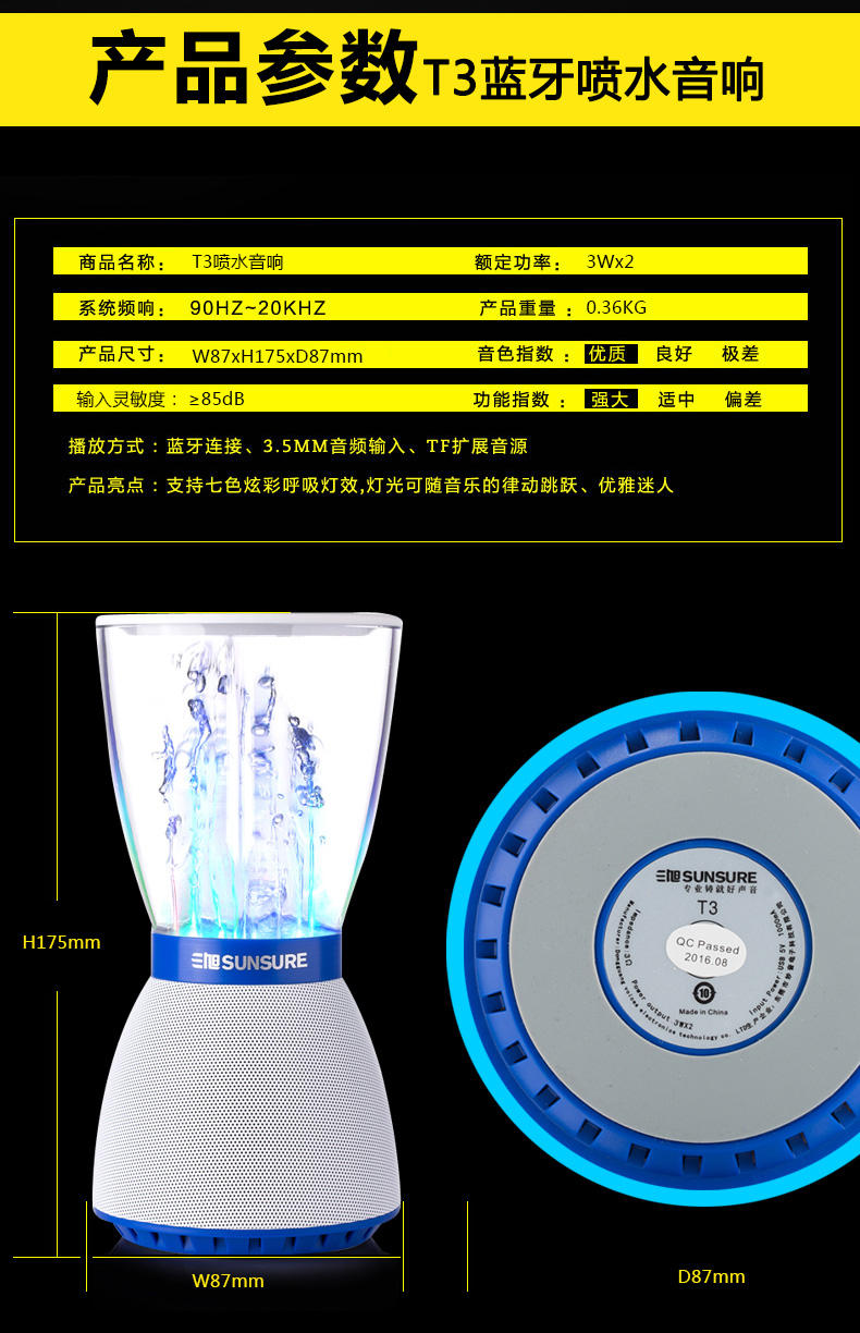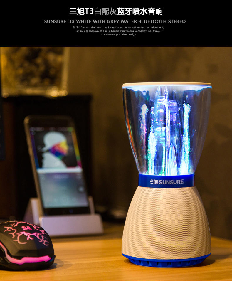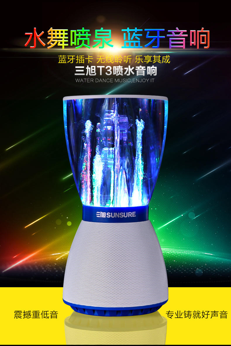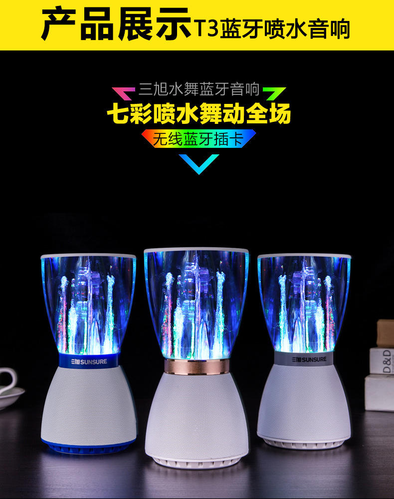 网站首页 【三旭 T3水舞喷水音响无线蓝牙音箱电脑手机迷你喷泉小低音炮插卡】 售价: ¥268+90美金币 已售: 5645 评价: 次评价 微信扫一扫轻松购买 数量: − + 收藏 保障: 随时退 过期退 极速退 真实评价