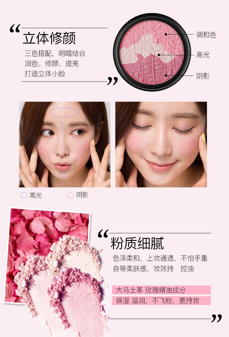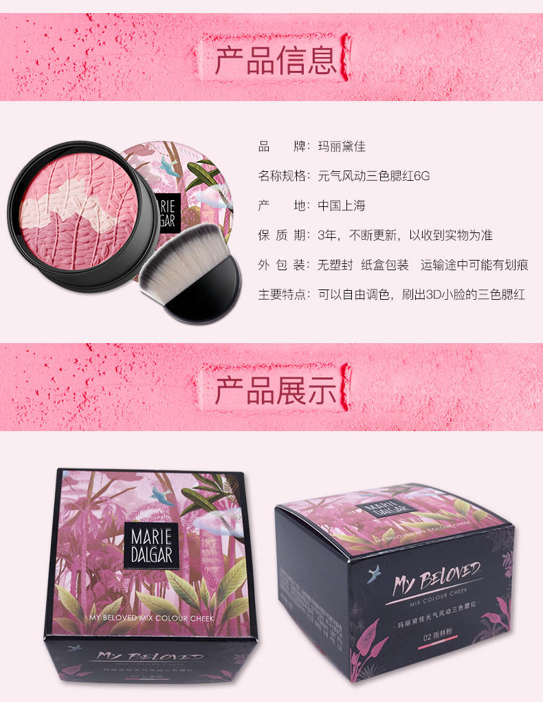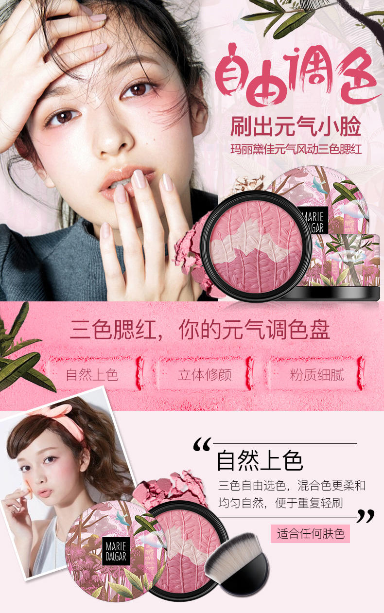 【玛丽黛佳元气风动三色腮红6g高光修容自然彩妆】