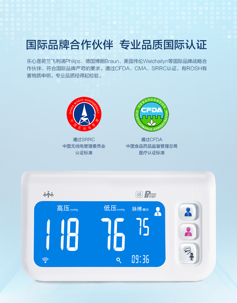 网站首页 【乐心 i8血压计电子血压计 家用上臂式WiFi传输数据 智能远程血压计 微信互联 一键呼叫 语音播报 语音对讲】 售价: ¥495+150美金币 已售: 6544 评价: 次评价 微信扫一扫轻松购买 数量: − + 收藏 保障: 随时退 过期退 极速退 真实评价