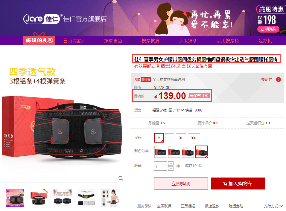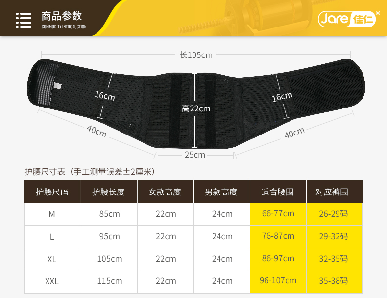 网站首页 【佳仁 夏季透气款 男女护腰带腰间盘劳损腰椎间盘钢板突出透气腰围腰托】 售价: ¥139+36美金币 已售: 4536 评价: 次评价 微信扫一扫轻松购买 数量: − + 收藏 保障: 随时退 过期退 极速退 真实评价
